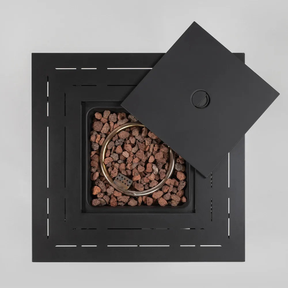 Functional design: The square tabletop creates a handy surface for drinks or decor when the fire is extinguished, while the recessed burner area focuses warmth toward guests. Lightweight yet sturdy, this unit is easy to position and integrates seamlessly into both modern and classic outdoor settings.