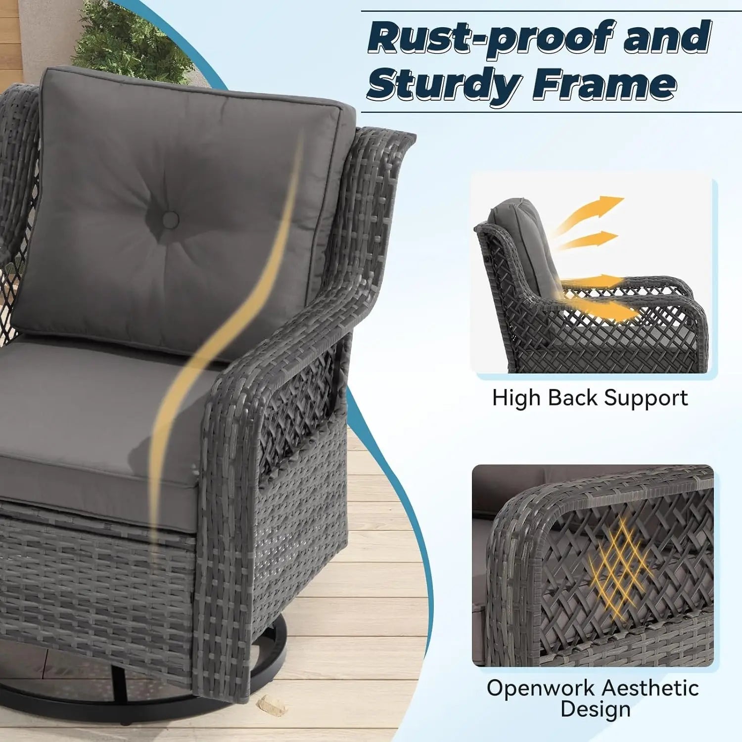 - Smooth, long-lasting swivel action: The chairs rotate with silky-smooth movement and withstand 10,000+ cycles for reliable outdoor use.