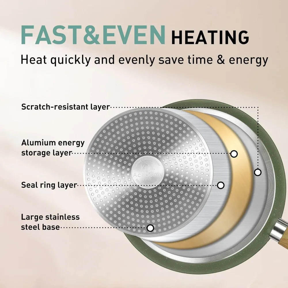 Revolutionize your cooking experience with our Nonstick Pots and Pans Set with Bakeware Kitchen Essentials. This comprehensive cookware set is designed to meet all your culinary needs, whether you're simmering, frying, or baking. Crafted with the highest quality materials, this collection ensures even heat distribution and exceptional performance. With no harmful chemicals involved, you can cook with peace of mind knowing your food remains safe and healthy.
