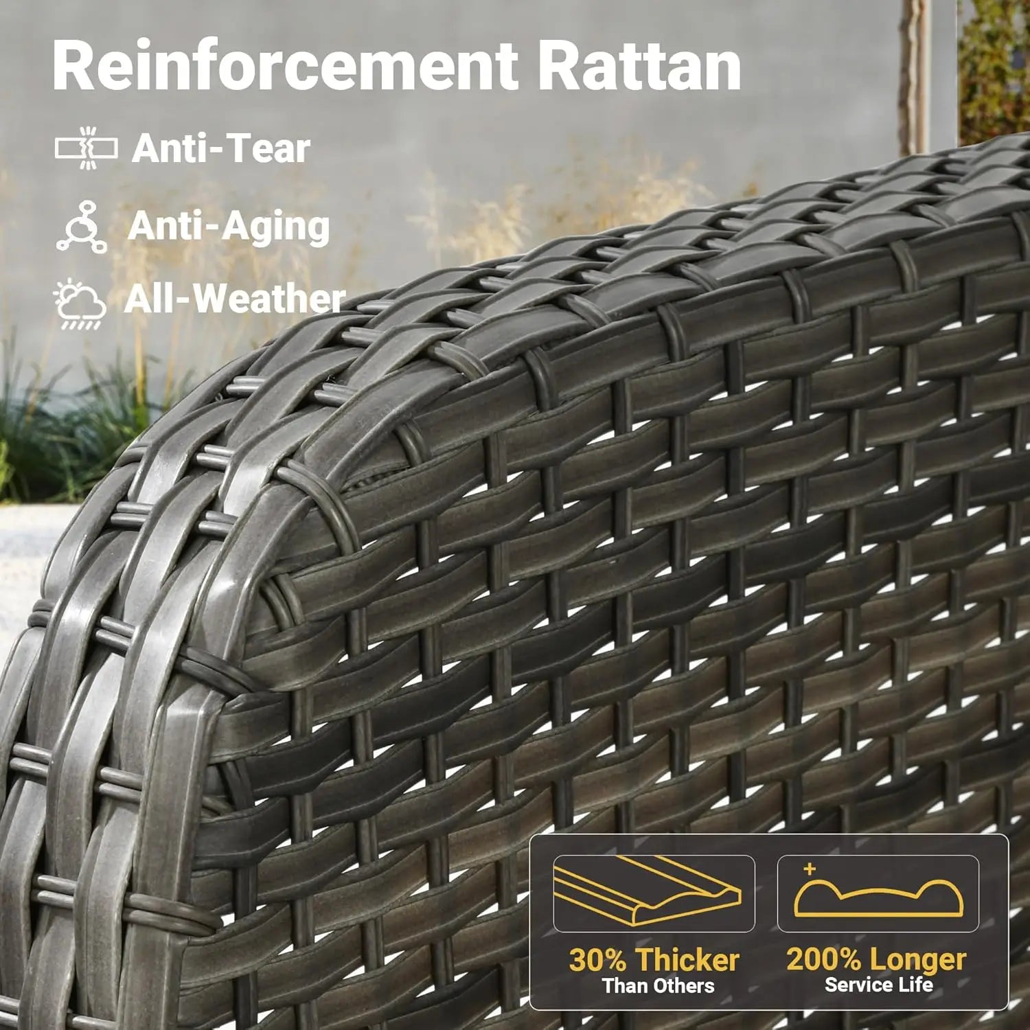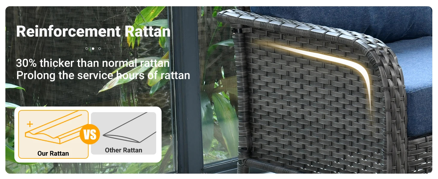 - All-weather durability: Premium synthetic rattan and weather-resistant finishes withstand sun, rain, and seasonal changes for low-maintenance outdoor living.