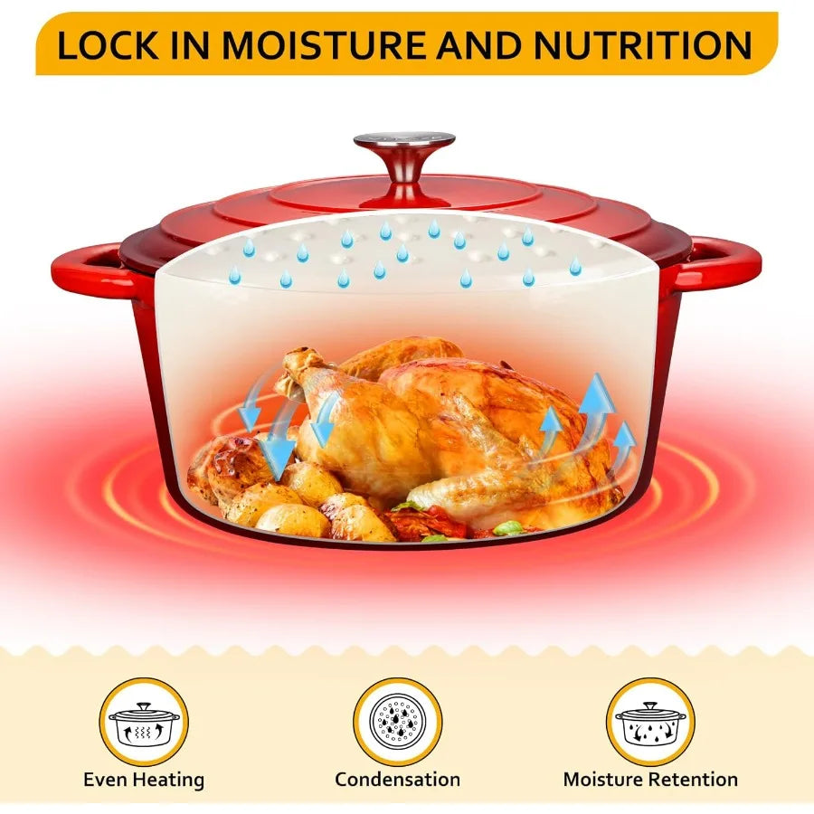 7.5 QT Dutch Oven Pot with Lid, Enameled Cast Iron Dutch Oven with Dual Handles for Sourdough Bread Baking, Cooking, Non-stick Enamel Coated Cookware (RED)
