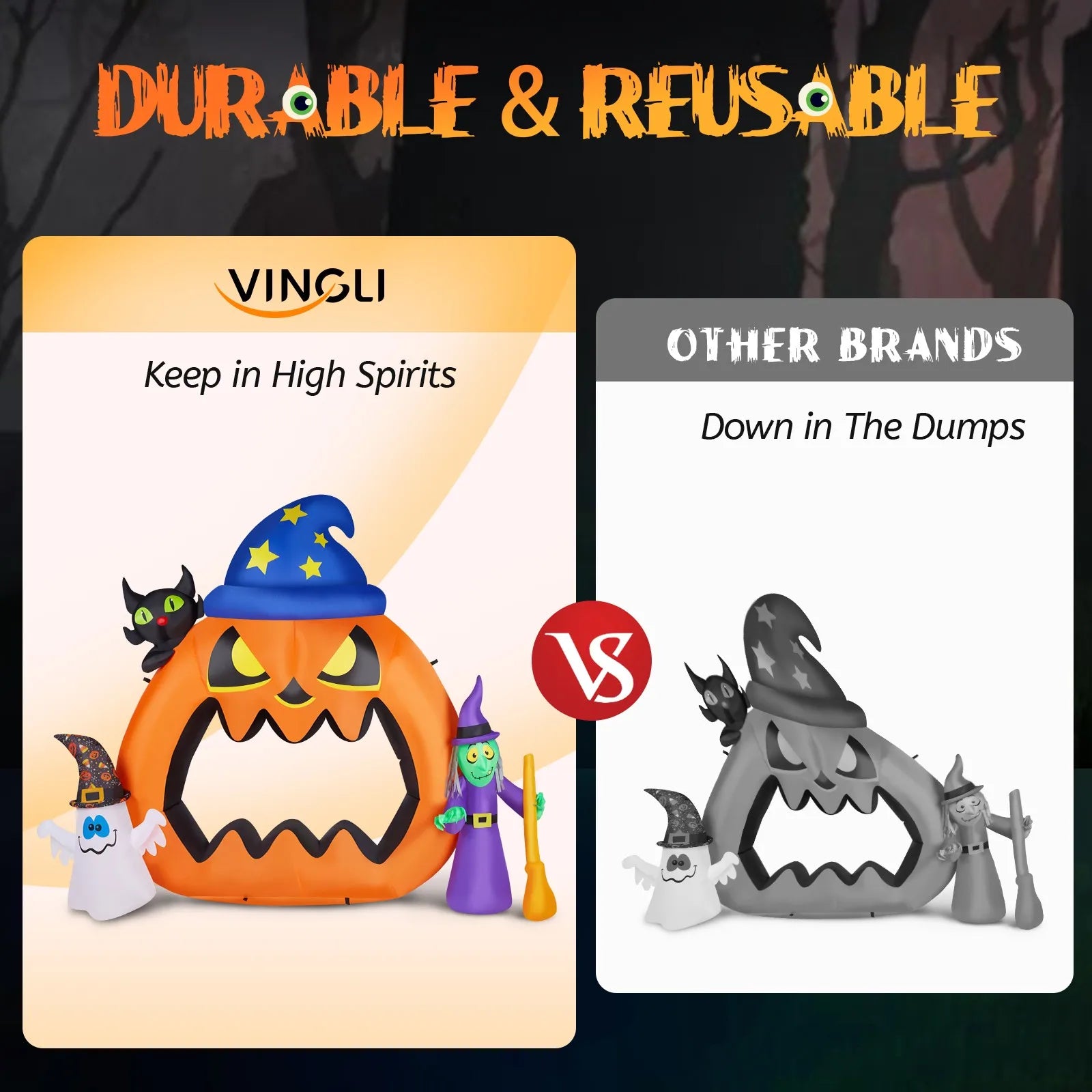 - Convenient Setup and Storage: Includes ground stakes and securing ropes for quick, stable setup; when the fright night is over, deflate, fold, and store easily for next year.