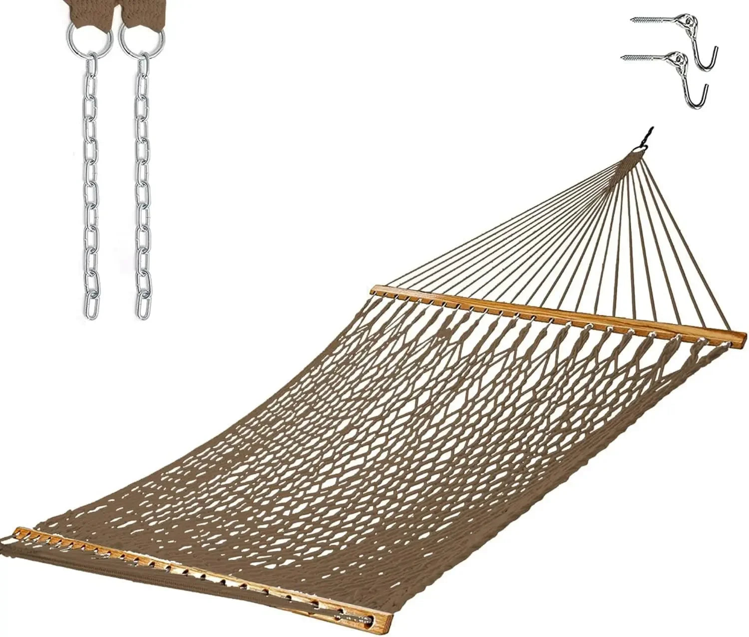 Castaway Living 13 ft. Double Traditional Hand Woven Cotton Rope Hammock with Free Extension Chains & Tree Hooks, Designed in Th