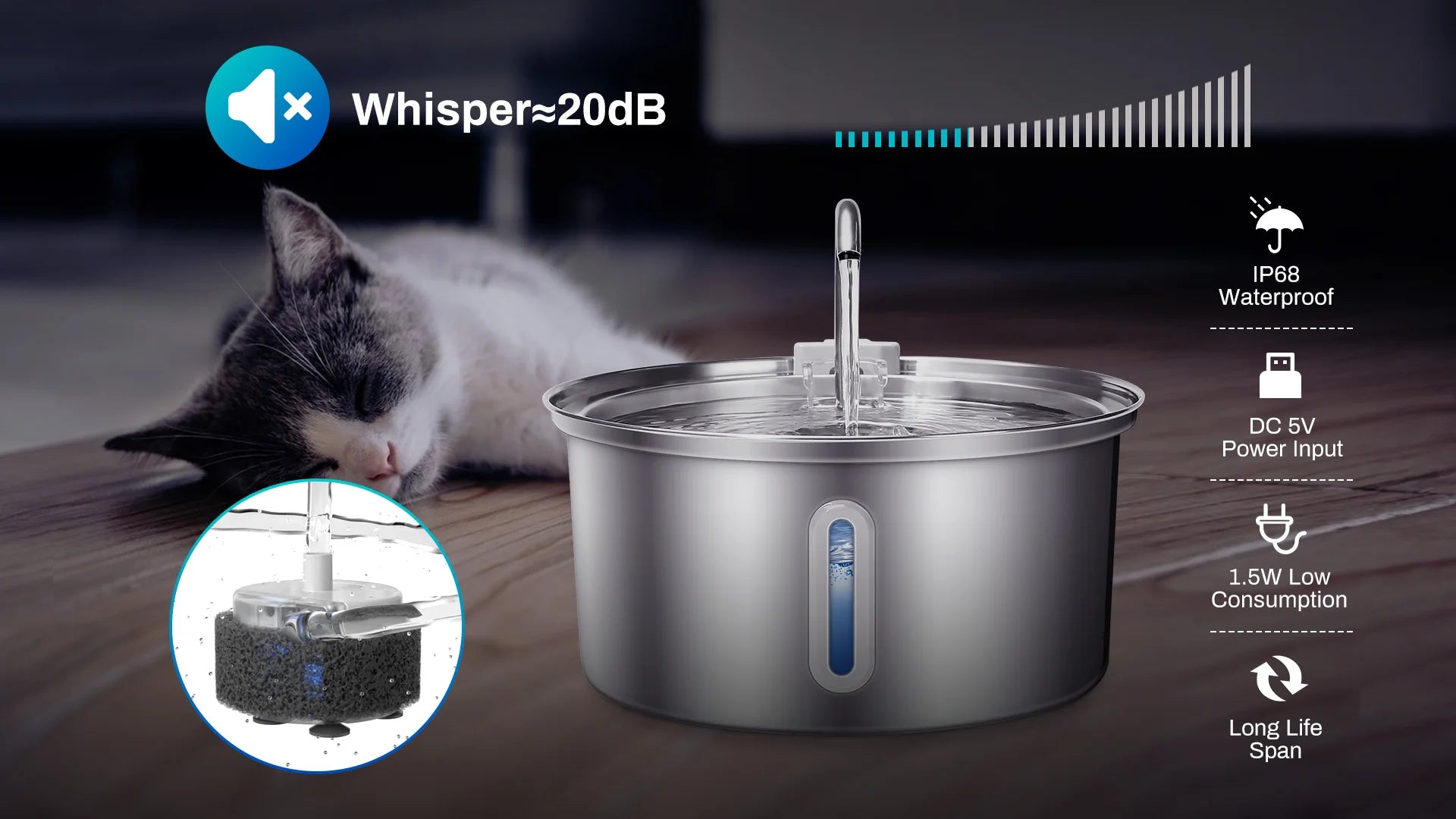 - Ultra Quiet Pump: Enjoy peaceful moments in your home, as the whisper-quiet pump operates unobtrusively, ensuring your pet can drink without disturbance.