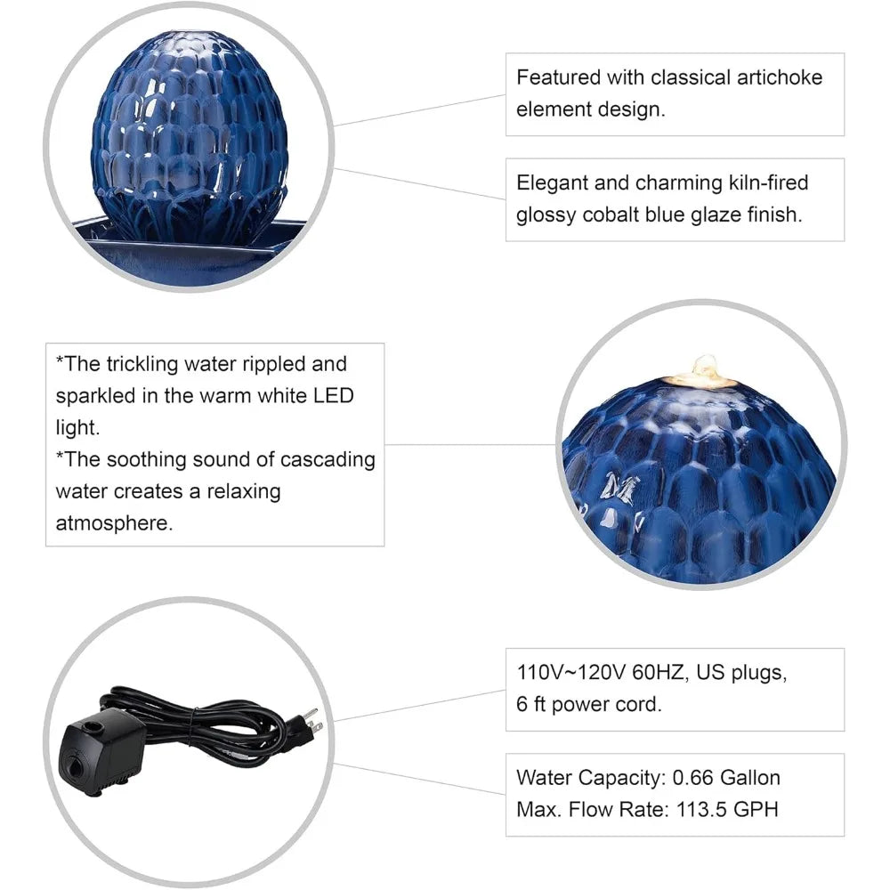 Transform your outdoor space with the Ceramic Outdoor Water Fountain With LED Light Pedestal from Glitzhome. Crafted in a striking cobalt blue glaze, this elegant fountain brings the soothing sound of flowing water to your garden, patio, or courtyard. Made from 100% ceramic, it offers durable beauty that stands up to the elements while adding a refined sculpture with ambient illumination after dusk.