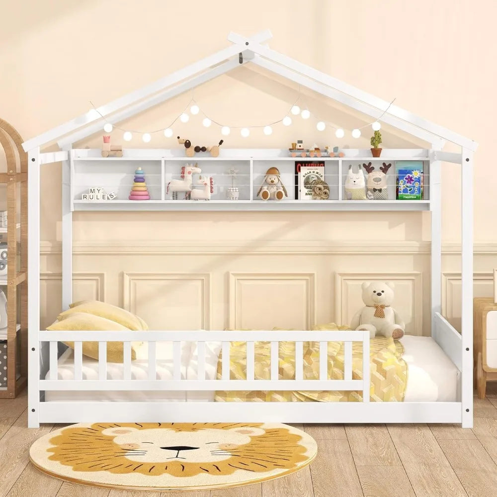 Smart storage meets smart safety. A dedicated storage shelf sits above the bed, giving busy little people a secure spot for books, toys, or a nightlight. Anti-falling strings help keep items in place, reducing clutter and minimizing the chance of small objects ending up on the floor when climbing in and out. The combination of accessible storage and thoughtful safeguards makes this bed a calm, organized anchor for any room.