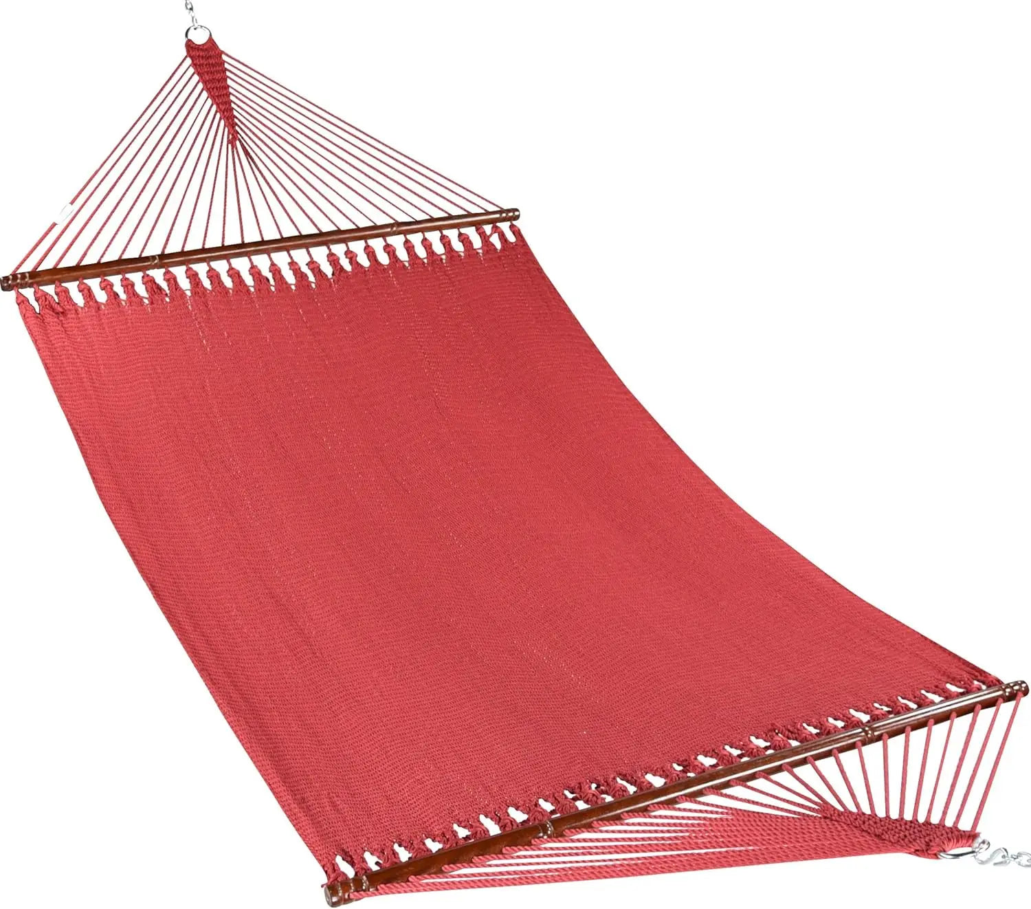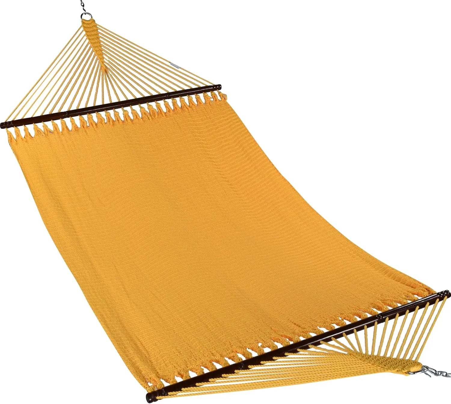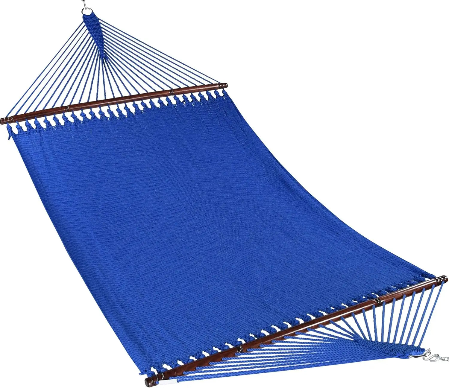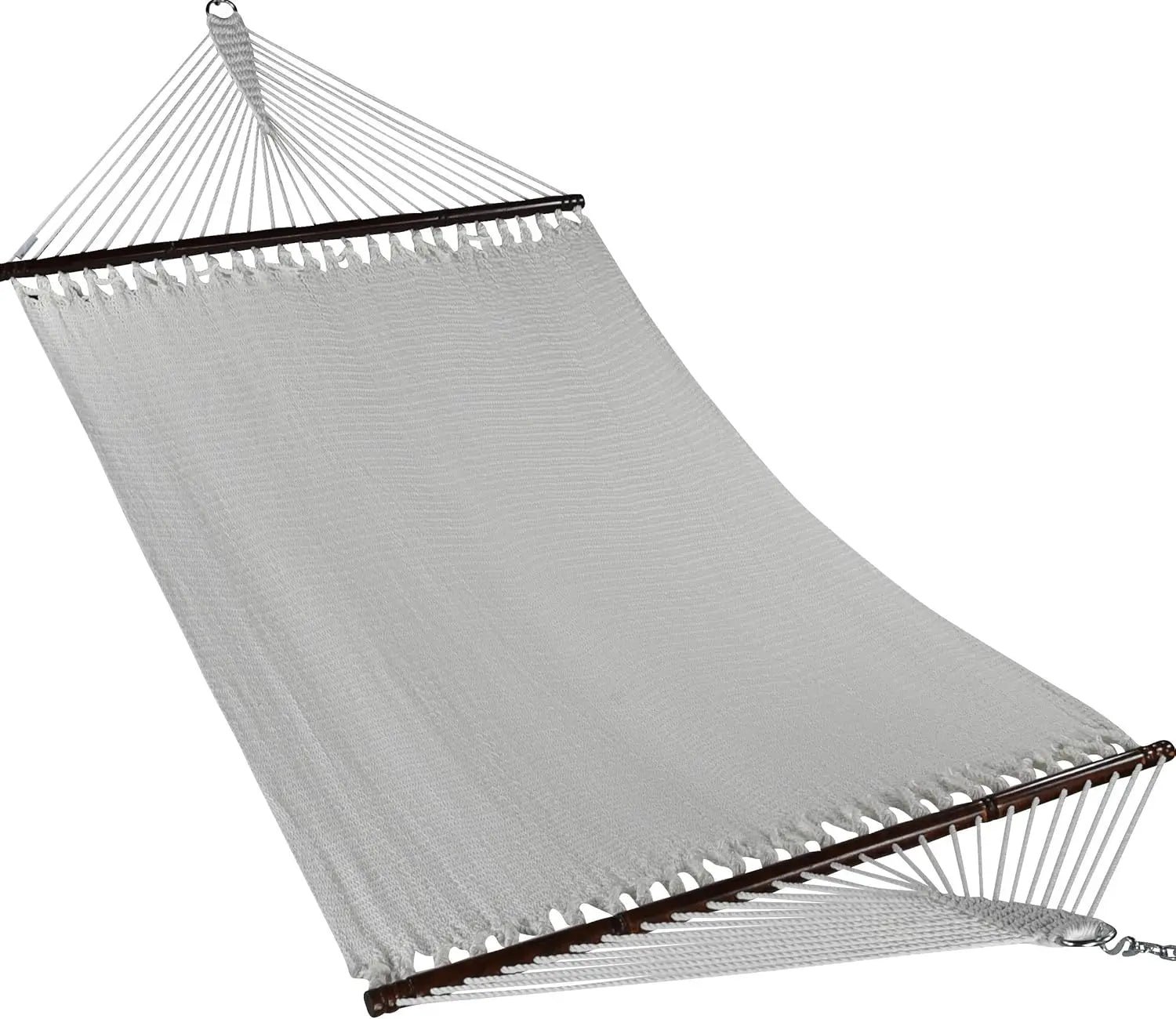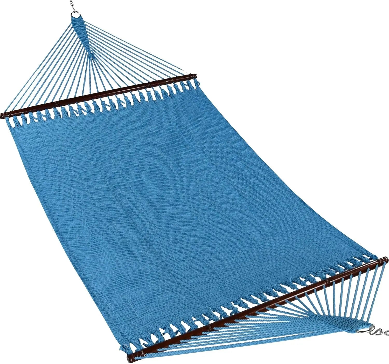 - 【PREMIUM MATERIALS】The soft-spun, weather resistant polyester cords used in our hammocks feel just as luxurious as cotton while offering unparalleled durability. Our spreader bars are made from 100% hardwood and are finished with a marine-grade varnish.