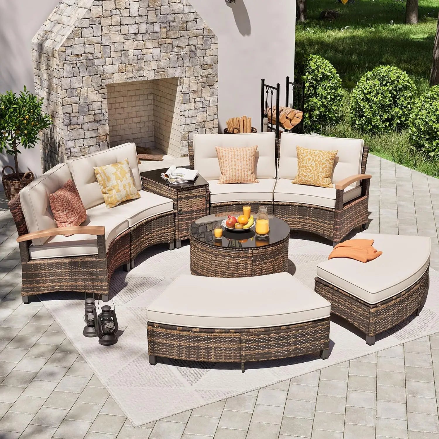 Transform your outdoor space into a cozy retreat with our Multi-piece Outdoor Patio Furniture Set. This exquisite set features a stunning half-moon design, complete with nine pieces that elegantly blend style and comfort. Ideal for entertaining guests or enjoying a peaceful evening under the stars, this furniture set is a must-have for any garden or patio.