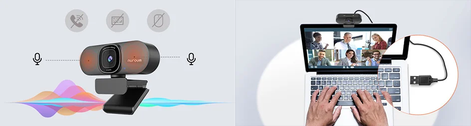 This webcam features 2 built-in high-quality microphones The webcam is automatically recognized by the