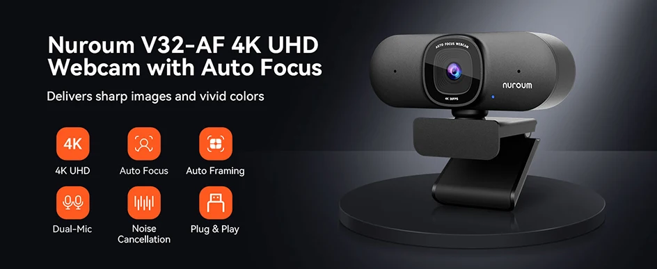 NUROUM V32AF 4k Full Hd PC Camera Webcam Ai Noise Canceling & Farming Conference Podcast Camera Web Cameras For Conference Room