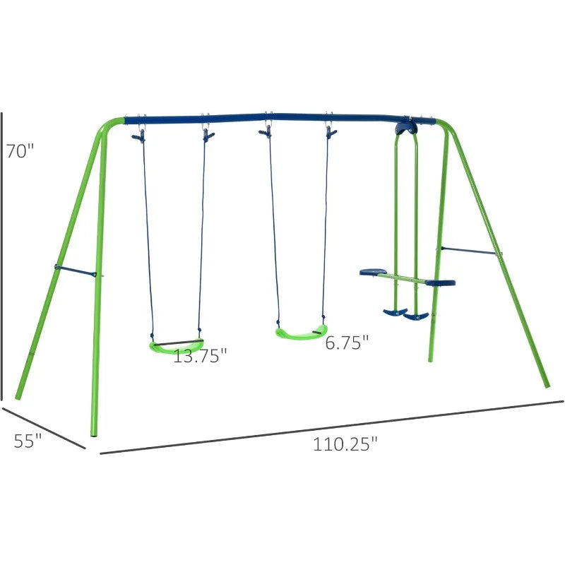 Outsunny Metal Swing Set With Glider And Two Seats is the ultimate backyard playground designed to spark your children's outdoor adventures. Built for kids aged 3 and up, this durable swing set invites up to three children to play, laugh, and develop motor skills together.