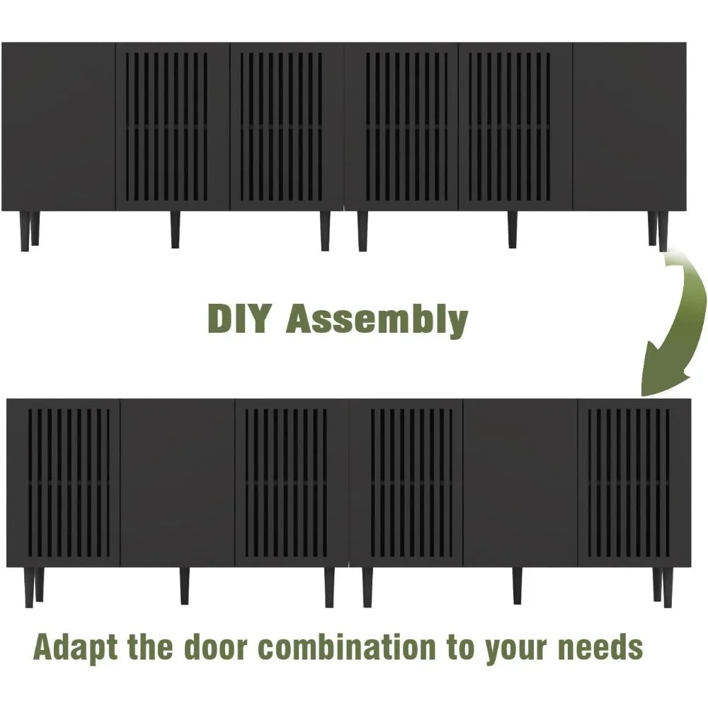 Meet the Modern Freestanding Buffet Cabinet With Adjustable Shelves And Doors—a bold black storage centerpiece that blends rustic countryside warmth with contemporary silhouette. Its grille-striped doors and clean lines offer a striking profile that elevates dining rooms, living spaces, or home offices without shouting for attention.