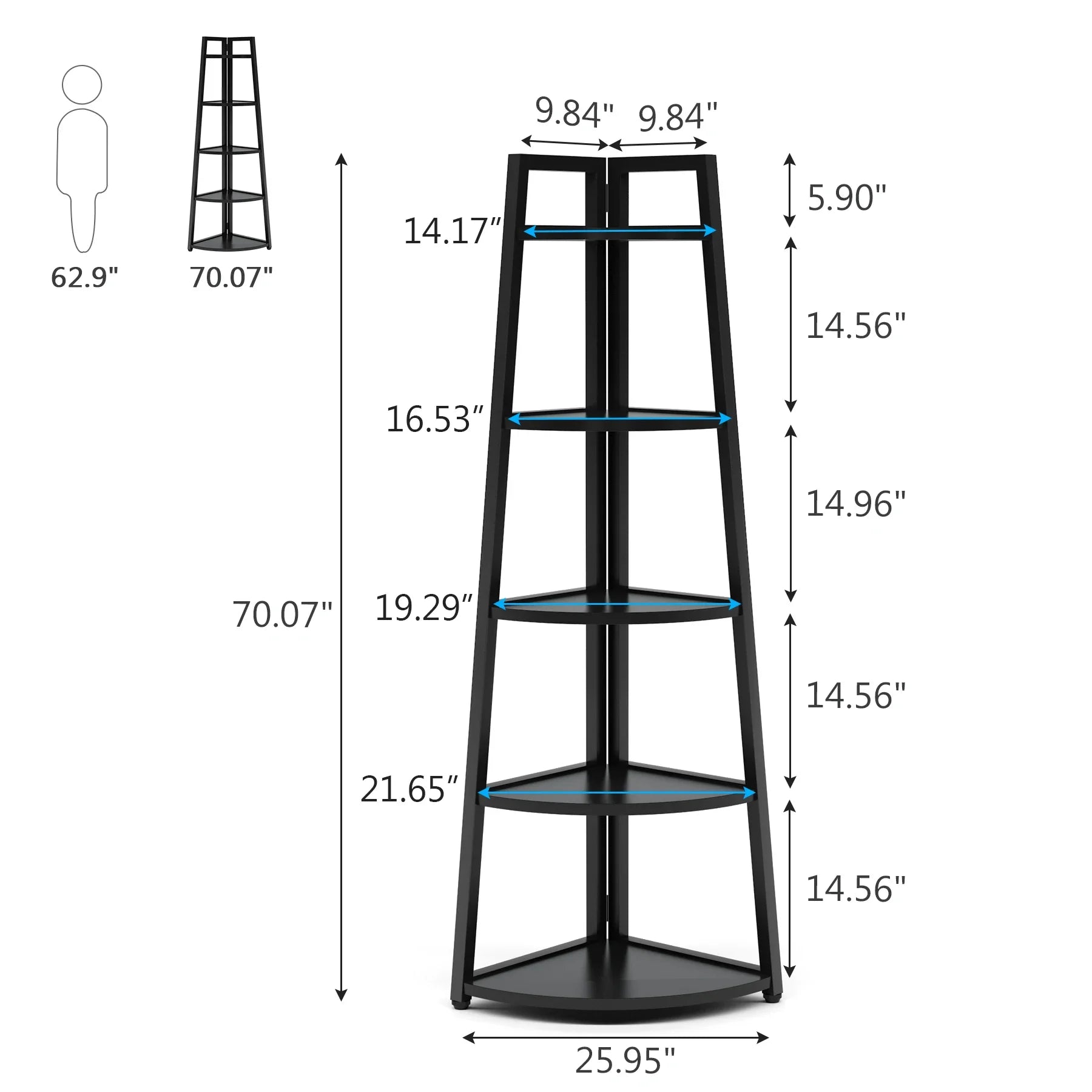 Tribesigns 70-inch Tall Corner Shelf from Porch and Petal Market blends industrial strength with modern elegance — a 5-tier corner ladder shelf designed to maximize space while showcasing books, plants, décor and more.