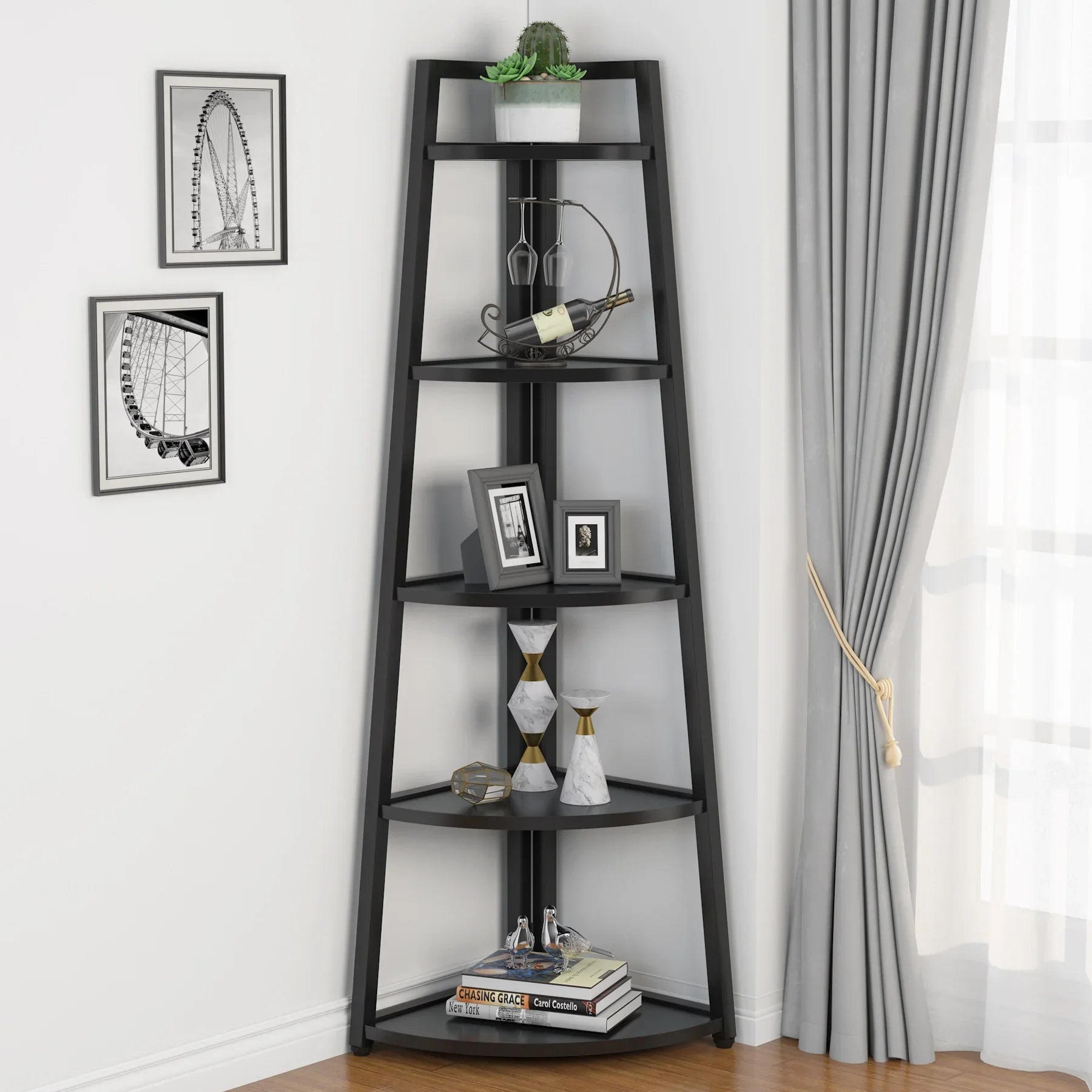 This floor-standing corner bookshelf is crafted with a sturdy iron frame and five open shelves that step outward, giving you a visual ladder effect that’s perfect for living rooms, home offices, hallways, or entryways. Its tall, slim footprint fits snugly into corners to free up floor space without compromising storage capacity.